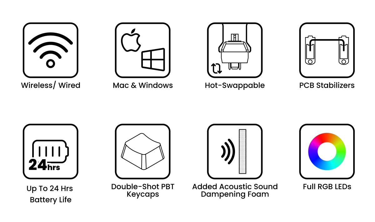 Never miss a moment while in the middle of a game. With a 2000 mAmp battery in all keyboards, you can rely on never disconnecting during your gaming session.